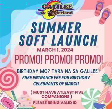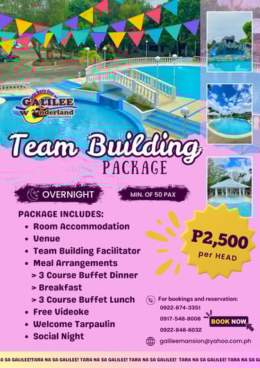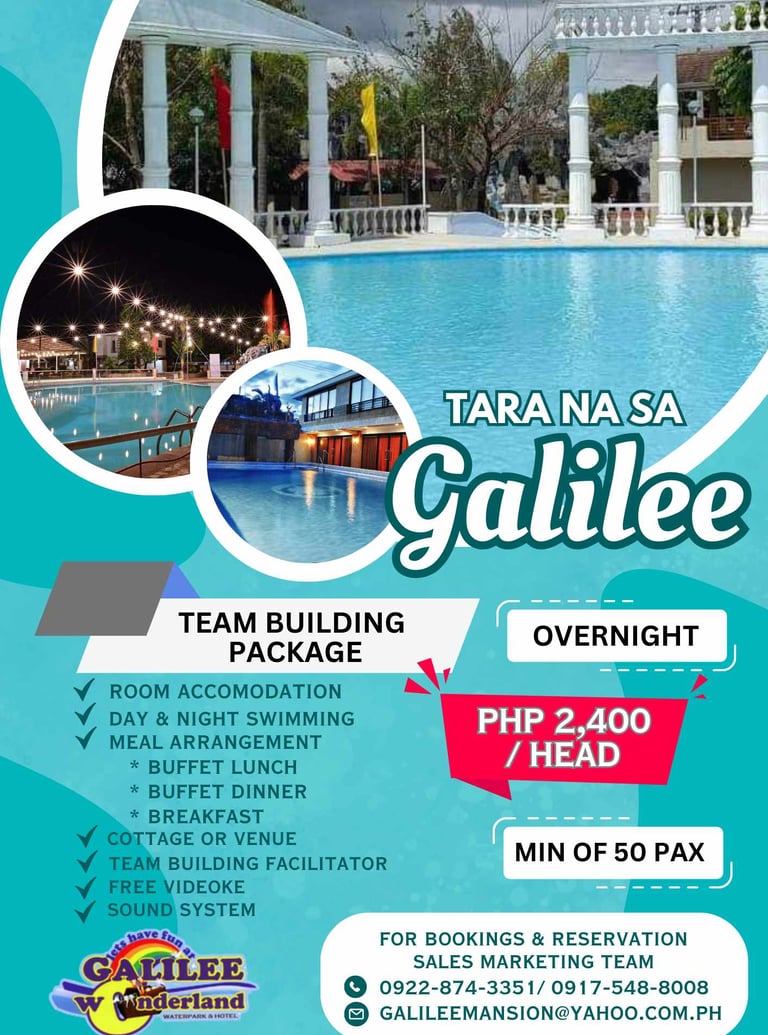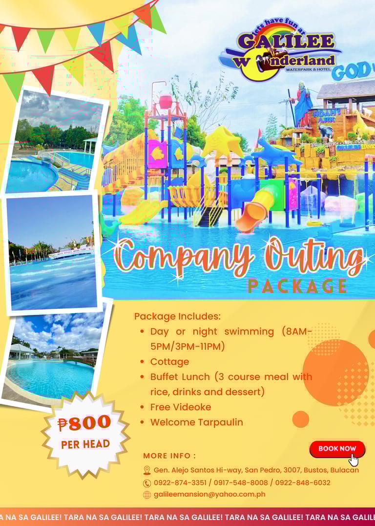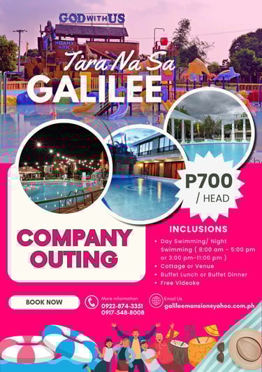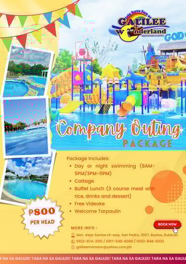 Escape to Galilee Wonderland Waterpark and Hotel, where adventure meets relaxation in the heart of San Pedro, Bustos, Bulacan. Formerly known as Galilee Resort, our stunning waterpark and elegant accommodations offer a one-of-a-kind experience inspired by biblical themes and modern luxury.